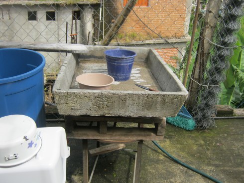 -Start washing diapers. Now technically, we have a washer. But it is not a washer like you probably have, or like you have access to at the laundromat down the street from you. It is a washer which sometimes manages to swirl the clothes around a little bit before I have to take them out, potentially scrub on them some more, rinse them, and squeeze as much water as I can out of them. Then I hang them on the line to dry and try to stay close by because it could suddenly start to rain at any moment in the day. Notice I say “start” washing diapers because as you can imagine, all of this is a process and I am also taking care of the baby and potentially still waiting on coffee and other such tasks that I probably shouldn’t bother trying to multitask. Taking care of Lucia means talking to her while I do things, hoping she plays with the giraffe that hangs on her carseat, trying not to feel guilty about letting her sit around in her car seat all morning, putting her in the wrap when she won’t sit alone anymore, feeding her when necessary (which of course is like a giant pause button on all these morning tasks)…. You get the idea. Slow, slow, slow.
