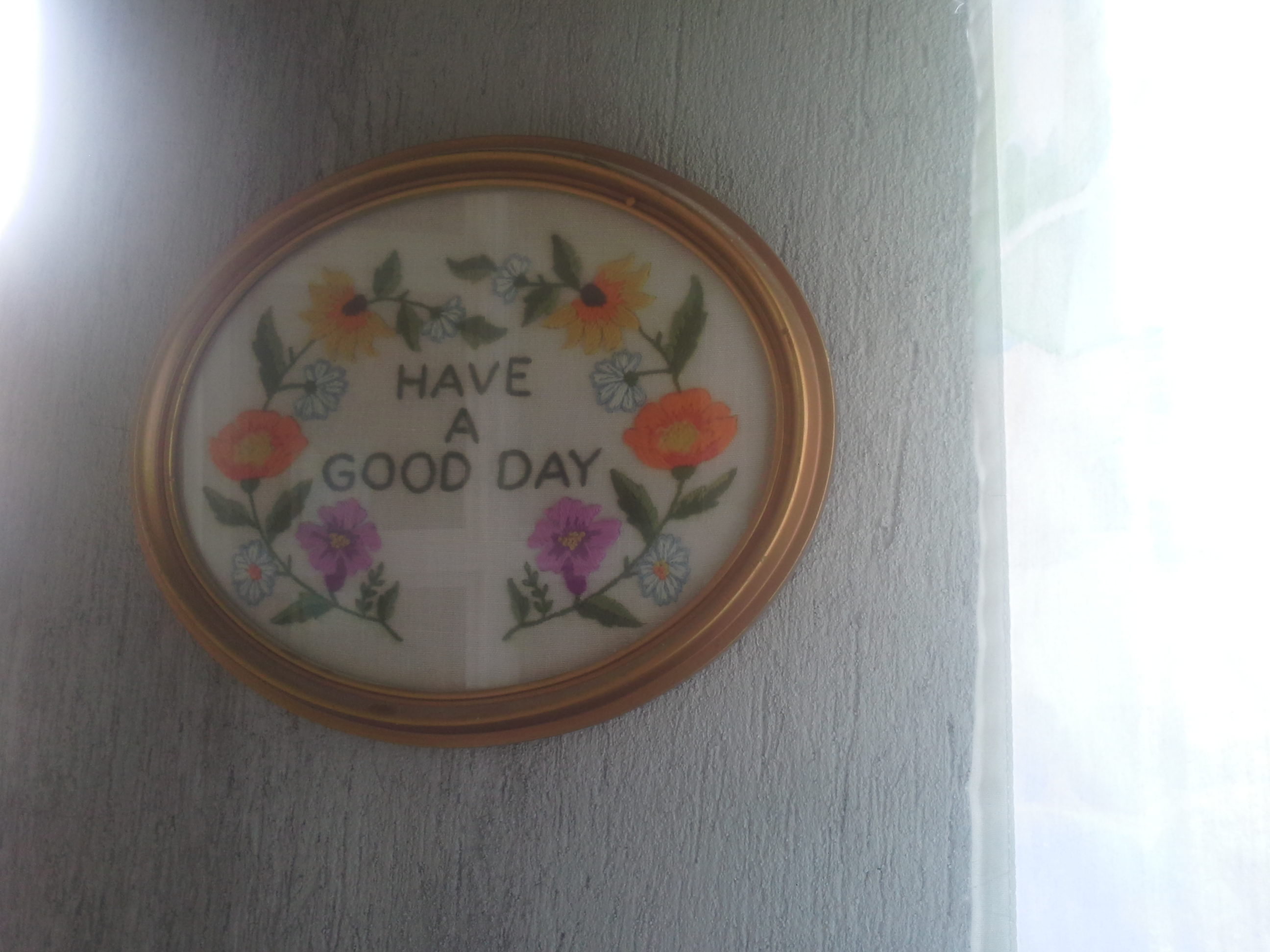 And more and more happened as the weeks passed. There were lots of boring things that had to happen, like adding a layer of concrete to the walls to make sure they don’t leak in the rainy season, smoothing out the windows so we can put in screens (we have half of the screens in now; the other half is still in the works). Things that before sounded boring became exciting, like putting up curtains. Uriel made us curtain rods and Conan’s Aunt Artemia took me out thriftstore shopping. Some of our curtains are repurposed sheets, but they do the job just fine. And thanks to Nery, we have a big, beautiful bed with mosquito netting to tuck us in at night. Lucia has her own bed, too, and some nights she even sleeps in it. Paulina paid to do the second bathroom, and Uriel put a moon and stars on the ceiling for Lucia. We’ve got mint, oregano, epazote, watermelon, tomato, cantaloupe and chiles. We’ve got more furniture. Our magnets are on the busted refrigerator we use as a giant cooler. A piece my Nonna embroidered hangs on my wall, reminding us to have a good day, everyday. Everyday, the house becomes more ours.