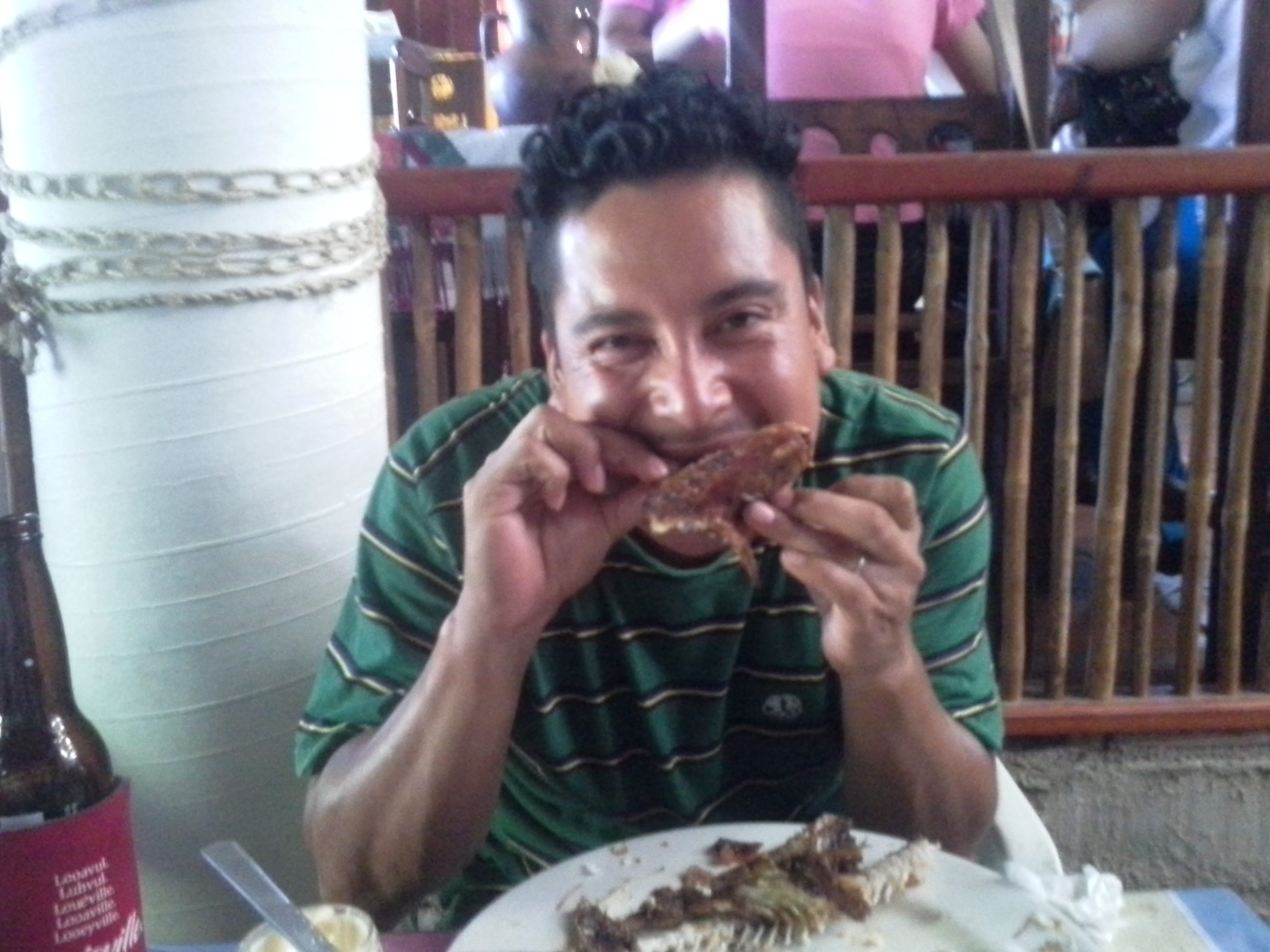 I have learned how to cook fresh fish, though. And you know we’re not in the U.S. because we cook it and serve it complete; head, tail, eyes and all (you do take out the insides first). And it’s funny because it doesn’t gross me out in the slightest. I don’t think it even did at first. Maybe it’s the result of years of preparation, from my mother telling me stories about her childhood visit to Mexico, being served a fish with the eye staring up at her. Or maybe it’s just that I suppose if you’re going to eat an animal, you might as well admit that it’s an animal. So there I am, picking the last bits of meat from the head, leaving the bones like a cartoon version of what the cat pulls from the trash (pretty much the only time we see all the fish bones in Louisville, Kentucky- on cartoons). Most often the fish I’m eating has been pulled from the ocean that morning by Conan’s uncle, and every last bit of it is delicious.